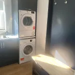 La villa Spacious 5 Bedroom House In Buncrana dispone de un cuarto de baño con un inodoro separado y una lavadora. Para mayor comodidad, ofrece secadores de pelo y toallas.